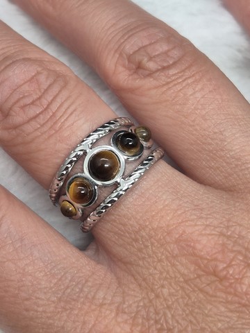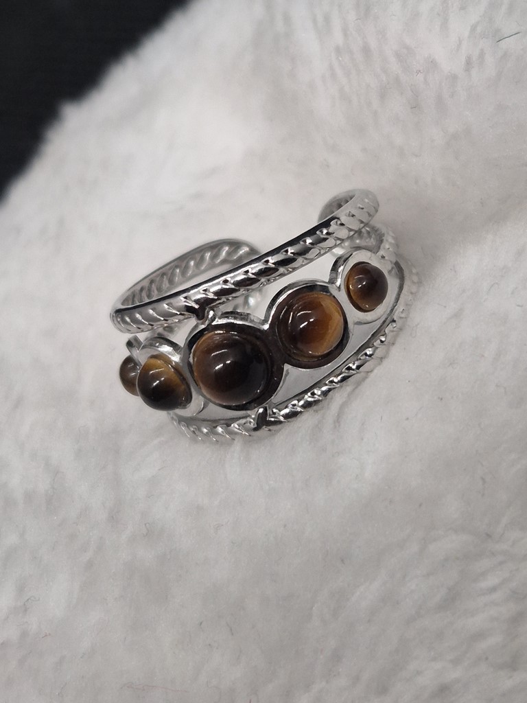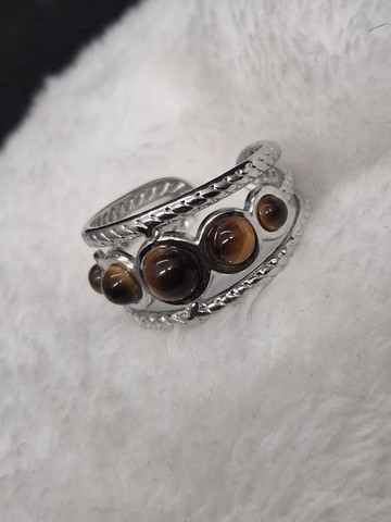 Baugue en acier inoxydable sertie de ses perles d'oeil de tigre aux vertus pricipales suivantes:
