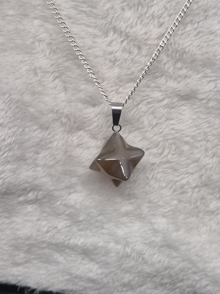 Collier Merkabah en pierre d'agate fleur de cerisier aux vertus principales suivantes:
