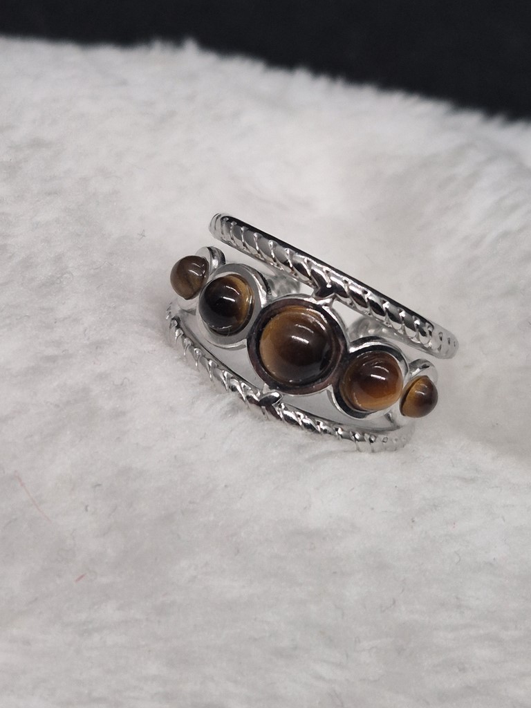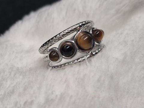 Baugue en acier inoxydable sertie de ses perles d'oeil de tigre aux vertus pricipales suivantes: